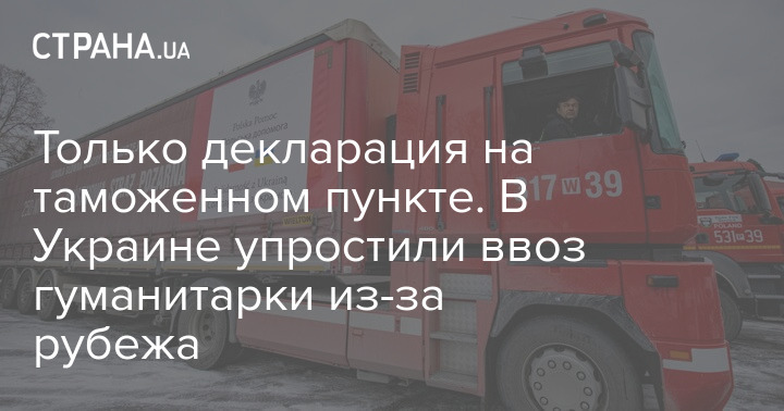 Сегодня вечером Кабинет Министров Украины принял решение об упрощении ввоза гуманитарной помощи из-за рубежа. С завтрашнего дня для ввоза гуманитарки в Украину понадобится только декларация на таможенном пункте. Все остальные бюрократические процедуры отменяются.