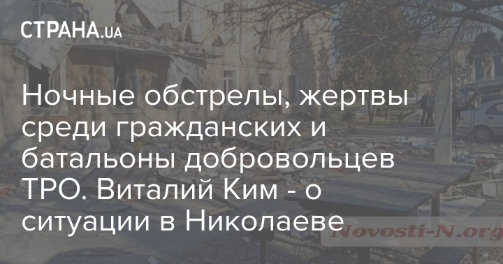 Двое мирных жителей погибли во время ночного обстрела Николаева. Об этом сообщил губернатор региона Виталий Ким в своем новом видеообращении.