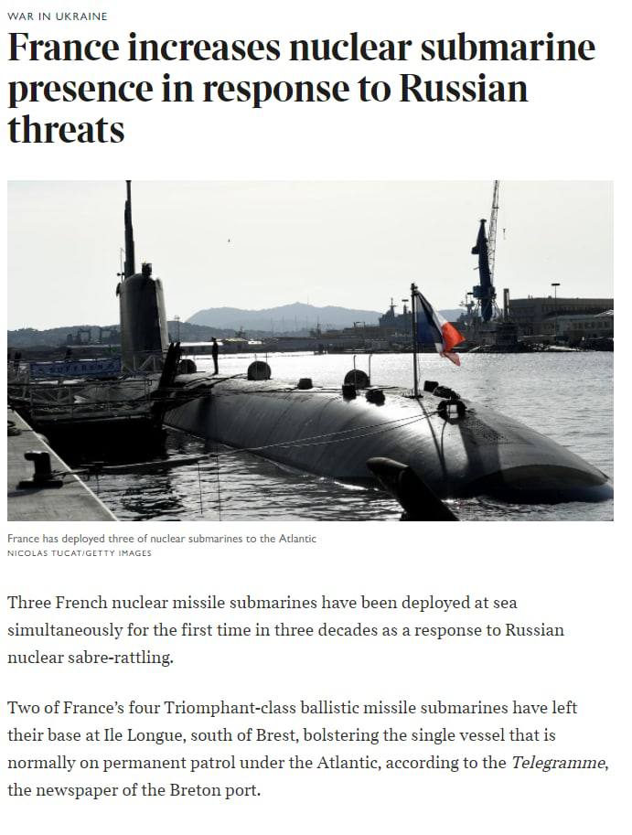 Во Франции увеличивают готовность своих ядерных сил в ответ на угрозы со стороны России. Об этом пишет The Times.