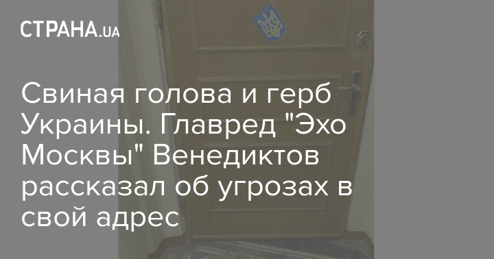 Главный редактор закрытой радиостанции "Эхо Москвы" Алексей Венедиктов заявил, что под дверь его квартиры подкинули свиную голову, а на дверь наклеили стикер с гербом Украины и антисемитской надписью Judenzau.