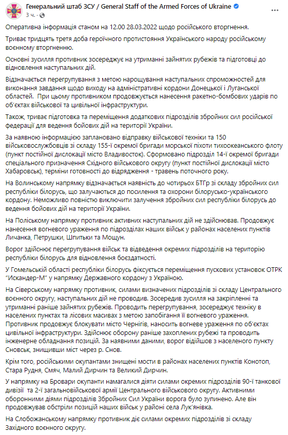 Кроме этого, продолжается подготовка и перемещение дополнительных подразделений вооруженных сил РФ для ведения боевых действий на территории Украины.