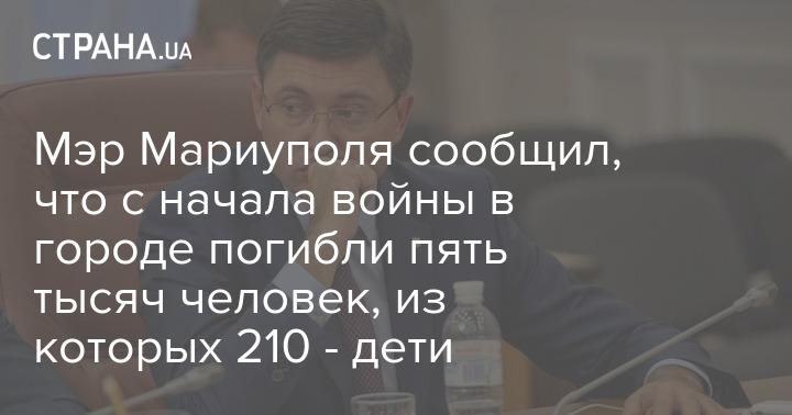 Мэр Мариуполя сообщил, что с начала войны в городе погибли пять тысяч человек, из которых 210 - дети