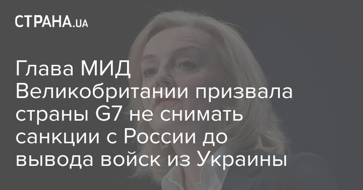 Глава Министерства иностранных дел Великобритании Лиз Трасс заявила, что санкции G7 против России не должны сниматься, пока российские войска находятся на территории Украины.