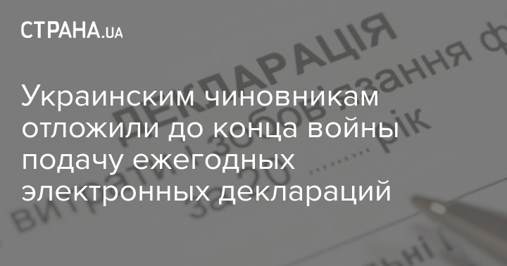 Чиновники, депутаты, судьи и остальные категории населения, которые должны до 1 апреля подавать ежегодные электронные декларации, освобождаются от этой обязанности на время военного положения.