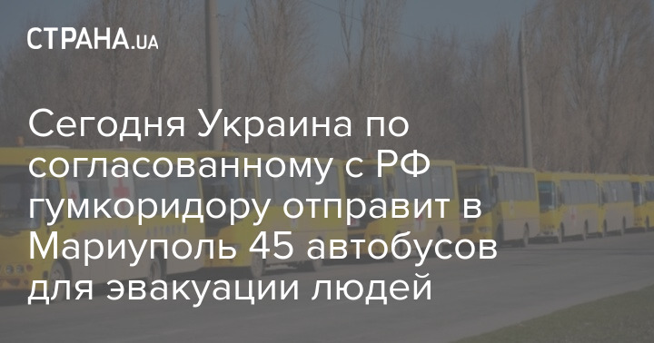 Сегодня Украина по согласованному с РФ гумкоридору отправит в Мариуполь 45 автобусов для эвакуации людей