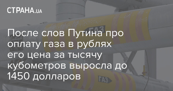 Вскоре после заявления Путина о том, что с завтрашнего дня страны Европы, поддержавшие санкции в отношении России, должны будут расплачиваться за газ в рублях, стоимость газа выросла до 1450 долларов за тысячу кубометров. До соответствующего заявления Путина стоимость газа была на 15% меньше, то есть, держалась в пределах 1230 долларов за тысячу кубометров.