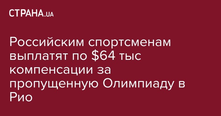 Российским спортсменам выплатят по $64 тыс компенсации за пропущенную Олимпиаду в Рио