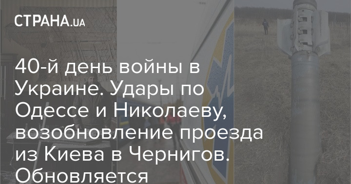 В понедельник, 4 апреля, в Украине продолжается война с Россией, после того, как военные РФ вторглись и начали обстрелы 24 февраля. Сегодня пошёл уже 40-й день.