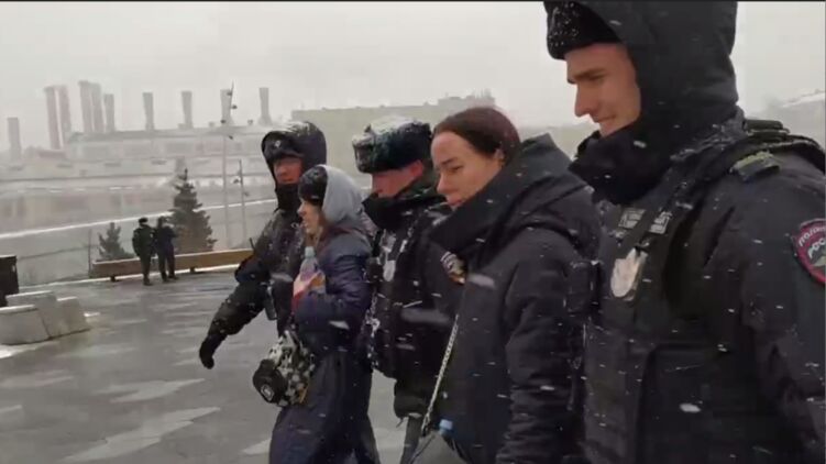 В Москве задерживают участников антивоенных протестов. Скриншот видео