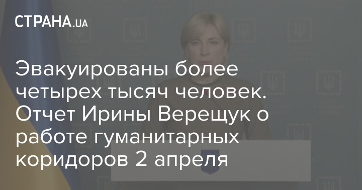 Эвакуированы более четырех тысяч человек. Отчет Ирины Верещук о работе гуманитарных коридоров 2 апреля