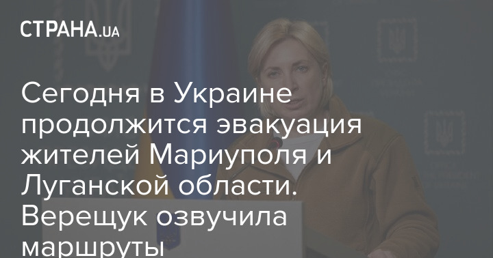 Сегодня в Украине продолжится эвакуация жителей Мариуполя и Луганской области. Верещук озвучила маршруты
