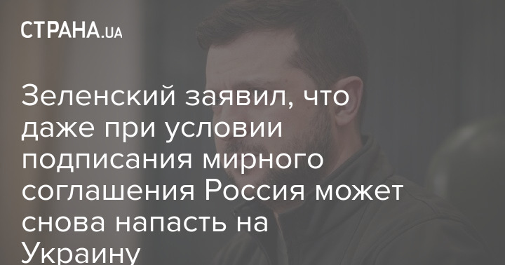 Зеленский заявил, что даже при условии подписания мирного соглашения Россия может снова напасть на Украину