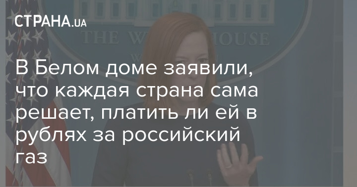 Пресс-секретарь Белого дома Джен Псаки заявила, что решение об оплате в рублях поставок российского газа страны принимают индивидуально. А США уже высказывались против подобного шага.