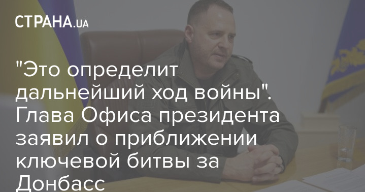 Глава Офиса президента Андрей Ермак заявил о приближении ключевой "битвы за Донбасс", которая определит дальнейшей ход войны с Россией.