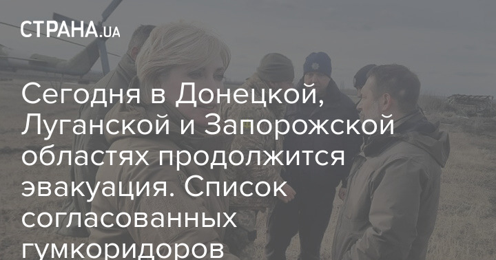 Сегодня в Донецкой, Луганской и Запорожской областях продолжится эвакуация. Список согласованных гумкоридоров
