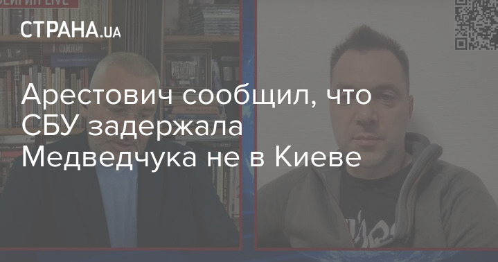 Советник главы Офиса президента Алексей Арестович сообщил, что Служба безопасности Украины задержала  народного депутата Виктора Медведчука не в Киеве.