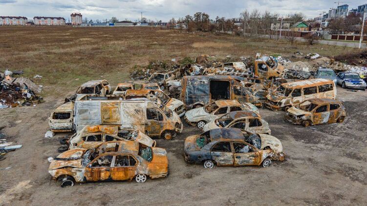 Опубликованы фото кладбища расстрелянных и сгоревших машин в Буче
