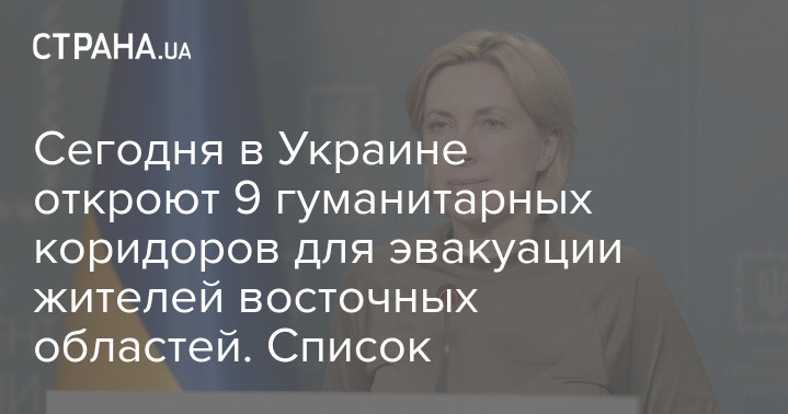 В Украине 14 апреля будут работать 9 гуманитарных коридоров для эвакуации из восточных областей. Из Луганской области гумкоридоры будут работать при условии отсутствия обстрелов.