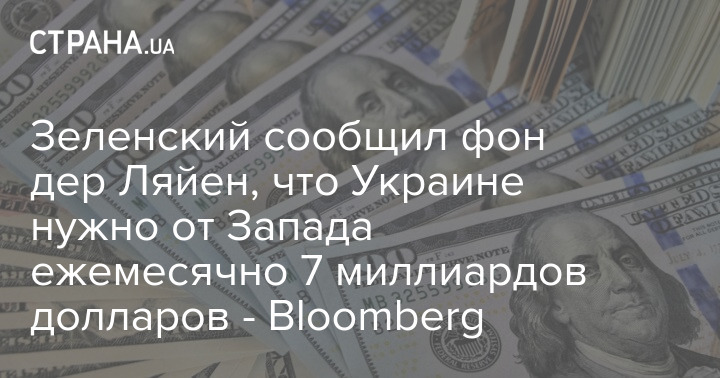 Об этом президент Украины Владимир Зеленский заявил главе Европейской комиссии Урсуле фон дер Ляйен на прошлой неделе, в ходе ее визита в Киев, передает Bloomberg.