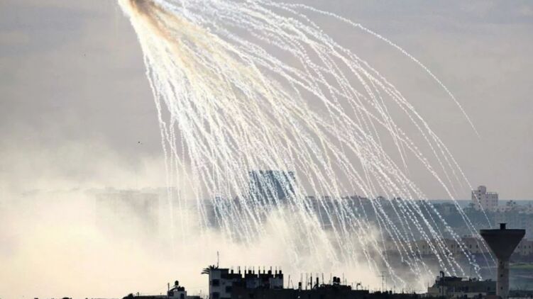 Фосфорные боеприпасы - это оружие, содержащее белый фосфор и распространяющее воспалительное соединение, температура горения которого превышает 800°C. Белый фосфор занимается контактом с воздухом, а территория его распространения может достигать нескольких сотен квадратных метров.
