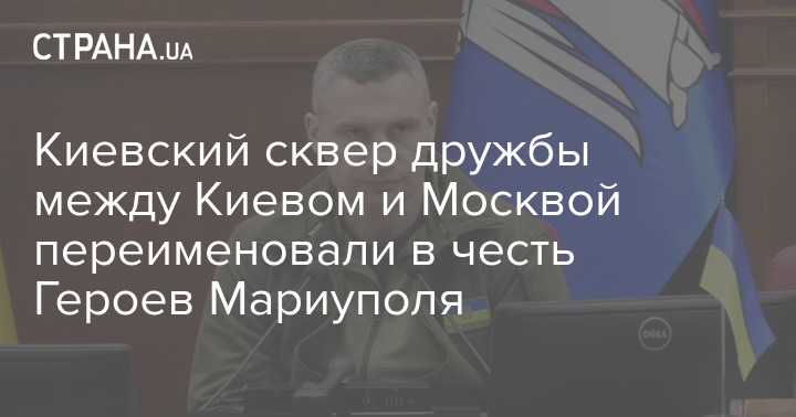 В пятницу, 15 апреля, депутаты Киевсовета поддержали переименование столичного сквера дружбы между Киевом и Москвой (на Теремках) в сквер Героев Мариуполя.