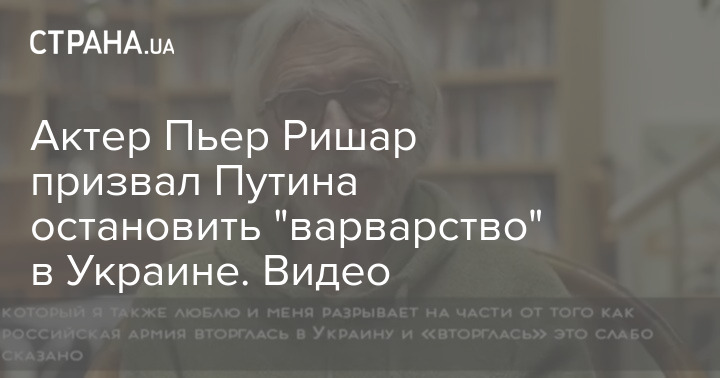 Легендарный французский актер Пьер Ришар в открытом обращении к президенту РФ Владимиру Путину призвал остановить войну в Украине, которую он назвал "варварством".