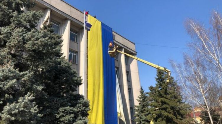 В оккупированном Херсоне вывешивают украинский флаг. Фото: Facebook