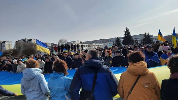 В Славутиче во время оккупации проходили проукраинские митинги. Фото: Соцсети