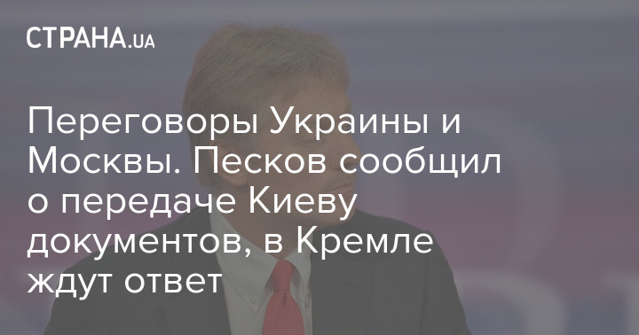 В Кремле заявили, что РФ в рамках переговорного процесса передала Украине проект документа с четкими выработанными формулировками, теперь Москва ждет ответа от Киева.