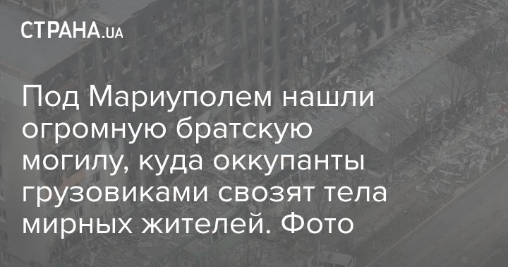 Как сообщил советник мэра Мариуполя Петр Андрющенко, в районе объездной дороги оккупанты обустроили несколько братских могил размером до 30 метров каждая. Именно там агрессор пытается скрыть последствия своих военных преступлений, свозя грузовиками к местам массовых захоронений тела убитых мирных жителей и сбрасывая их насыпью в огромные ямы.