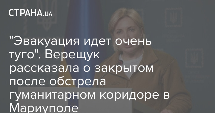Вице-премьер Ирина Верещук заявила, что эвакуация из Мариуполя "идет очень туго".