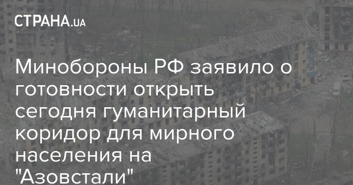 Минобороны РФ заявило о готовности открыть сегодня гуманитарный коридор для мирного населения на "Азовстали"
