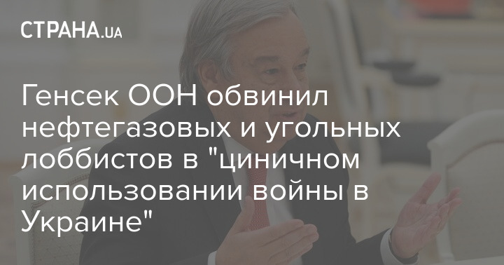 Генеральный секретарь ООН Антонио Гуттериш заявил, что лоббисты нефтегазовой и угольной промышленности "цинично используют войну в Украине".