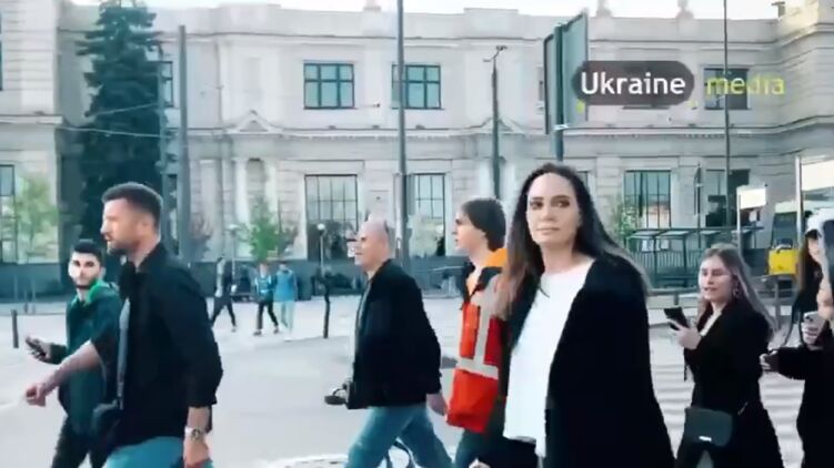 Актриса была на железнодорожном вокзале, где общалась с беженцами, когда начали выть сирены.