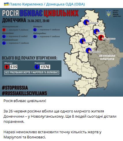 08.29 За прошлые сутки в результате действий армии РФ в Луганской области погибли трое гражданских лиц (в Золотом, Лисичанске и Попасной) и трое ранены, сообщает Сергей Гайдай.