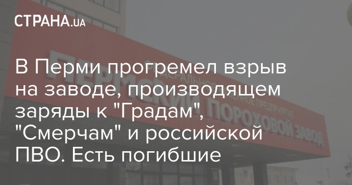 В Перми прогремел взрыв на заводе, производящем заряды к "Градам", "Смерчам" и российской ПВО. Есть погибшие