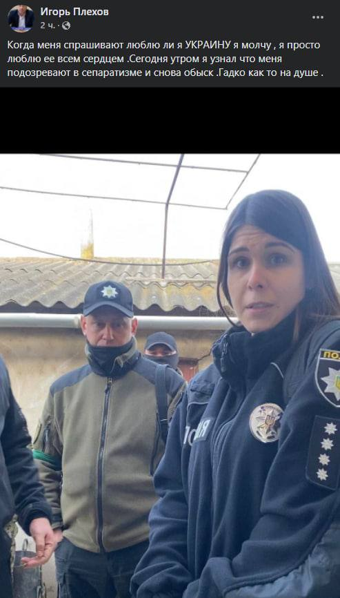 "Когда меня спрашивают люблю ли я Украину, я молчу, я просто люблю ее всем сердцем. Сегодня утром я узнал что меня подозревают в сепаратизме и снова обыск. Гадко как то на душе", - написал он.