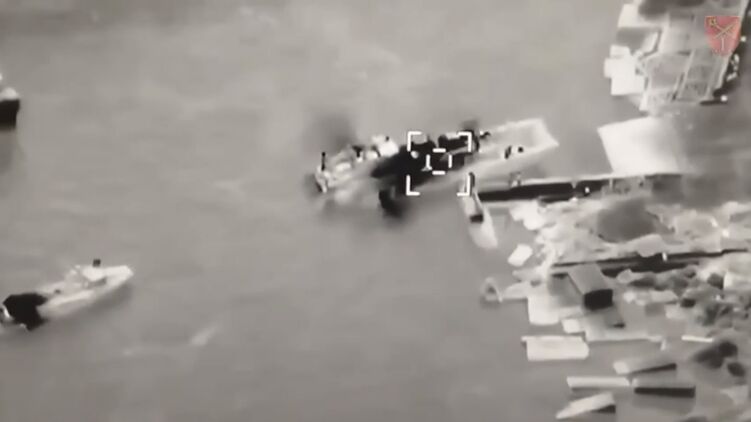 ВСУ опубликовали кадры ударов по российскому десантному катеру около Змеиного