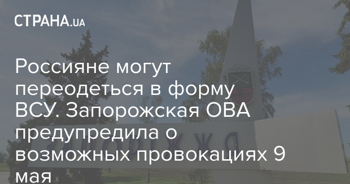 В понедельник, 9 мая, на территории Запорожской области возможны провокации. Россияне в форме украинских военных могут нападать на мирных жителей, которые будут участвовать в массовых мероприятиях.