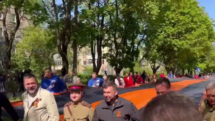 В шествии в Мариуполе принимает участие и Пушилин. Скриншот из видео