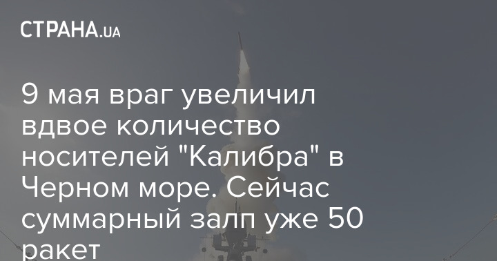 В Минобороны Украины заявили о том, что 9 мая Россия увеличила вдвое количество носителей крылатых ракет морского базирования типа "Калибр" в акватории Черного моря – их суммарный залп составляет до 50 ракет.