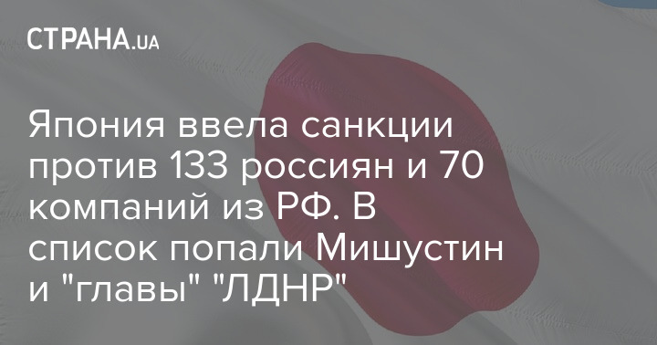 Японское правительство ввело новые санкции в отношении РФ. В санкционном перечне оказались 133 человека и 70 компаний.