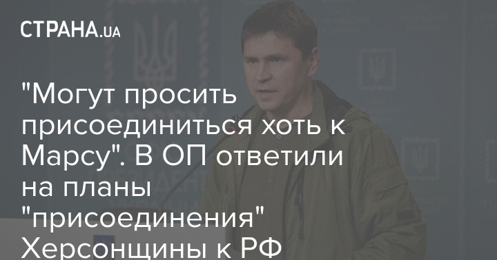 Советник главы Офиса президента Украины Михаил Подоляк отреагировал на заявление назначенных Россией "властей" Херсонской области о намерении присоединить регион к РФ.