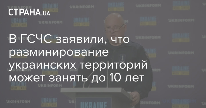 Начальник управления организации пиротехнических работ и гуманитарного разминирования ГСЧС Олег Бондарь заявил о том, что сходя из международного опыта, разминирование украинских территорий может занять от 5 до 10 лет