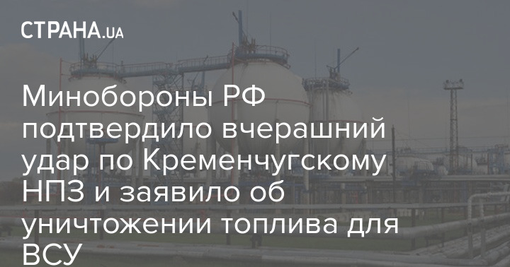 Минобороны РФ подтвердило вчерашний удар по Кременчугскому НПЗ и заявило об уничтожении топлива для ВСУ