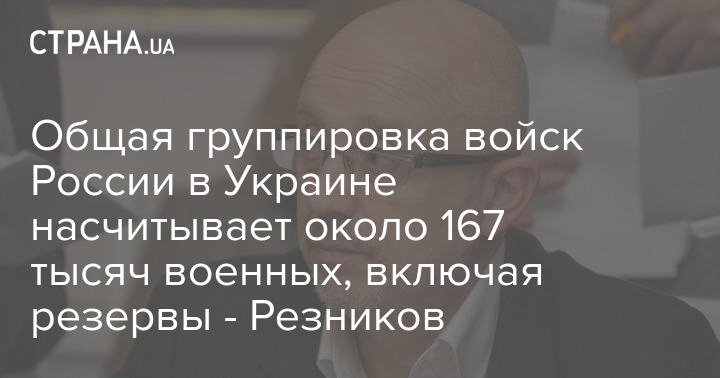 Общая объединенная группировка войск России, которая применяется против Украины, насчитывает около 167 тысяч личного состава, включая резервы.