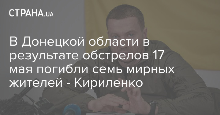 Во вторник, 17 мая, в Донецкой области из-за обстрелов погибли семь гражданских лиц.