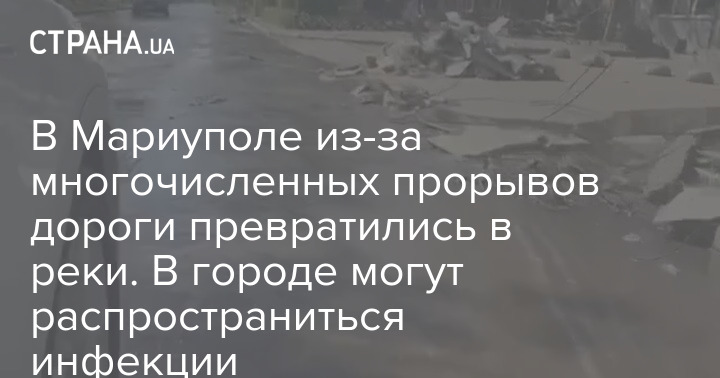 Сейчас дороги на улицах в Мариуполе превратились в реки. Это связано с тем, что в городе произошли многочисленные прорывы коммуникаций.