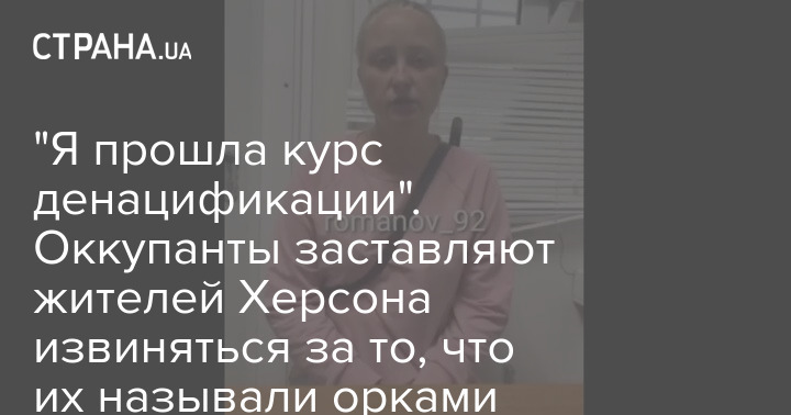 В сети появилось видео, на котором жительница Херсона заявляет, что она "прошла курс денацификации" и  извиняется за то, что ранее называла российских военных орками.