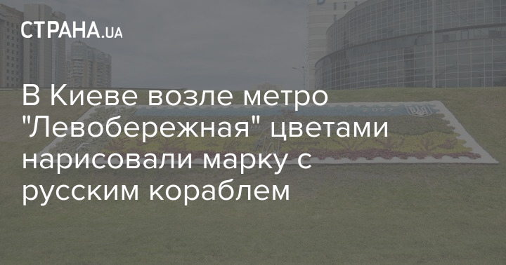 В Киеве возле метро "Левобережная" цветами нарисовали марку с русским кораблем